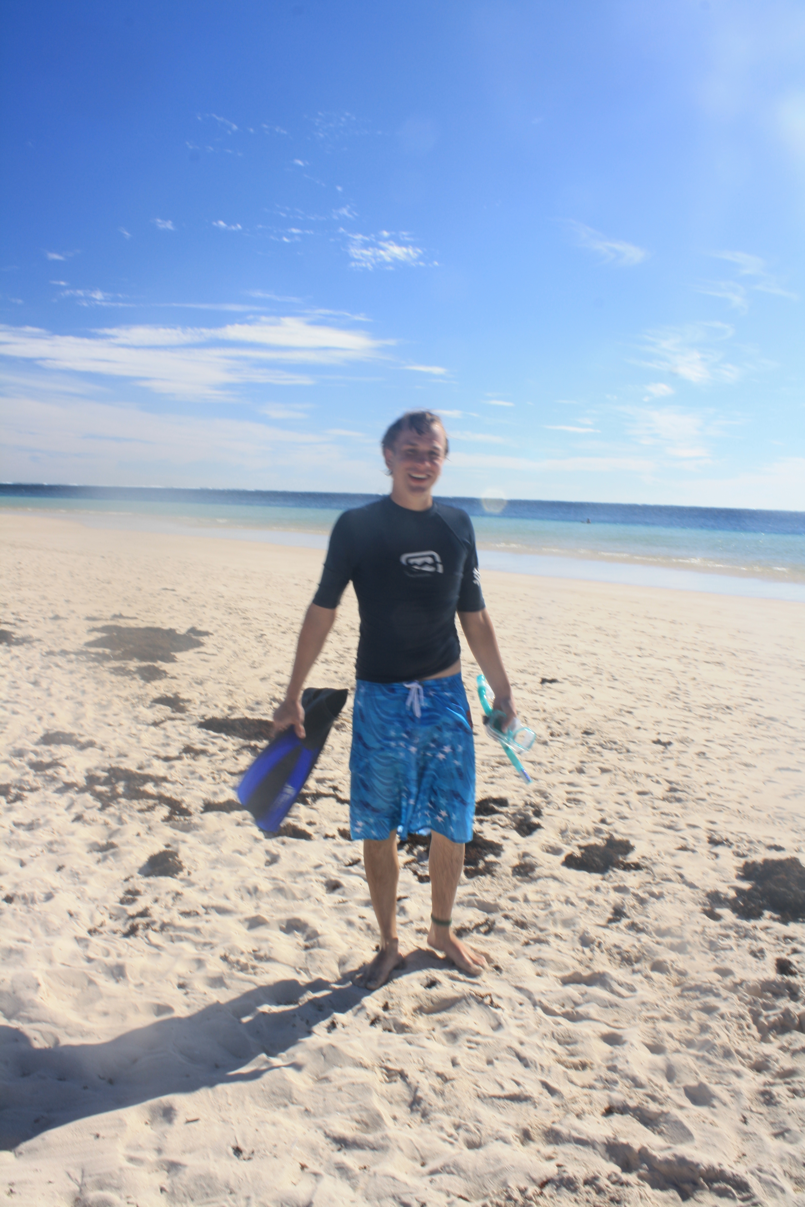 Pärast paaditrippi sõime lõunat ja viskasime randa lebosse. Poisid käisid kuskil megakaugel snorgeldamas. Nimelt näidati meile paadil olles ühte kohta, kus on ka hea snorgeldada ja kuhu põhimõtteliselt pääseb kaldalt. Mina arvasin alguses, et nad teevad nalja, sest mulle tundus küll kallas nii kaugel olevat, et ma ei uskunud, et nad soovitaks kellelgi nii kaugele välja ujuda. Hiljem selgus, et see ei olnudki nali. Poisid olid kokku vist kaks tundi ära, nii et me Christine’iga jõudsime juba seitse korda muretsema hakata. Hiljem läksime veel mina, Sean ja Christine ka snorgeldama.. väga äge oli! Riif algab juba väga kalda lähedalt tegelikult ja ei pea üldse kaugele ujuma. Nii veetsimegi terve päeva rannas: päevitades, ujudes, snorgeldades ja niisama puhates :)