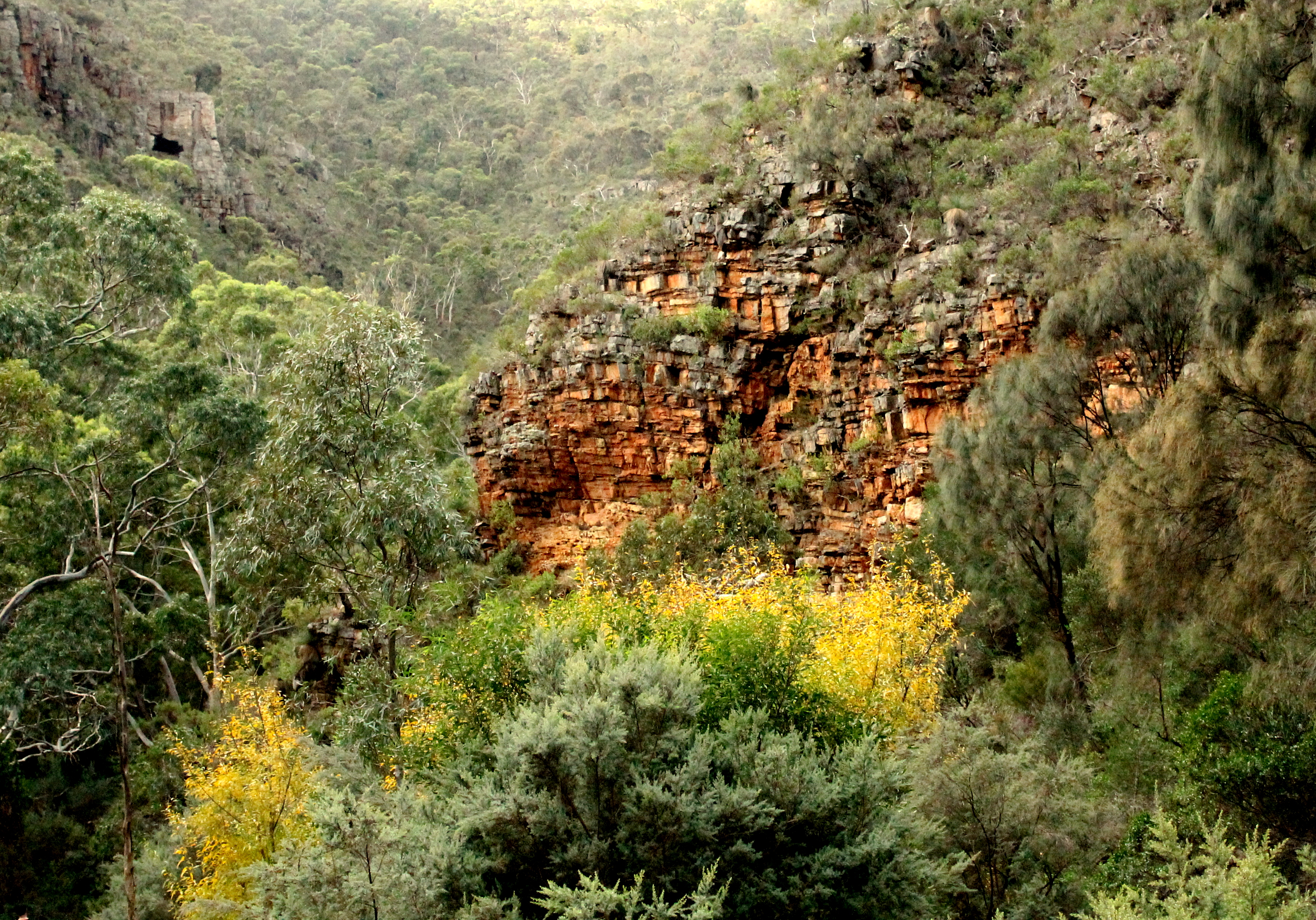 Pühapäeval oli meil poistega vaba päev, mida otsustasime tähistada Morialta Conservation Parkis. Morialta on üks mitmest Adelaide’i lähistel asuvast rahvuspargist (või tegelt selle nö. alaliik), kus paljud linnainimesed nädalavahetustel jalutamas/jooksmas käivad. Parki läbib üsna mitu rada – võimalik on vaadata erinevaid koskesid (mis iseenesest on suht väikesed ja veevaesed, vähemalt praegu) või matkata ühele kahest orgu ümbritsevast mäest. Kui koseni viival rajal oli liiklust vist küll sama palju kui Adelaide’i peatänaval, siis nii kui mäe otsa viiva raja peale suundusime, olimegi suht kolmekesi. Mäe otsa ronimine oli päris hea töö, aga kui juba üleval ja matkarada betoonist ja muudest kunstlikest pinnakatetest vabaks sai, oli kõndimine ikka täitsa lust ja lillepidu. Täitsa mõnus muld, hea tunne kui saab vahepeal vedrutada ka kuskil :)