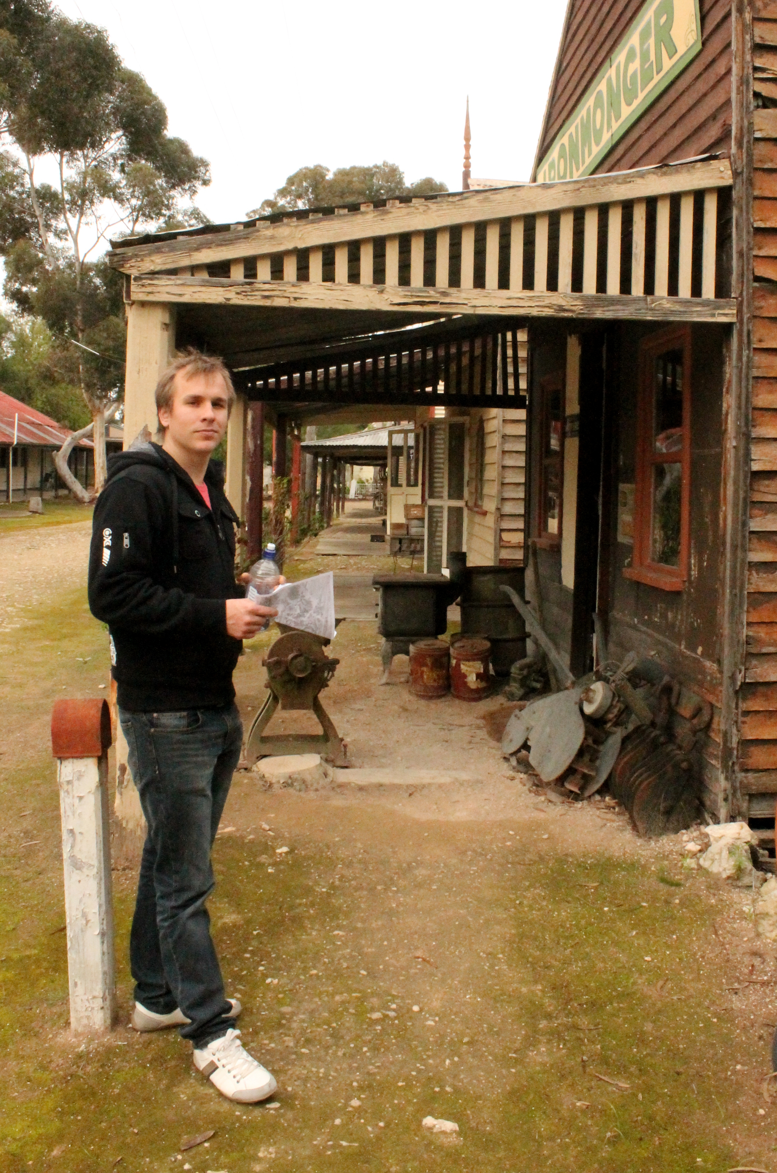 Täna käisime siis jälle väikestviisi väljasõidul. Esimeseks sihtkohaks oli Tailem Bend – üks vana linnake Adelaidest sajakonna kilomeetri kaugusel idas, kus asub Austraalia suurim nö. “pioneeriküla” – küla, kus on üle 100 vana hoone, mis on kõik ajastutruult sisustatud. Need “näidismajad” on kõik päris vanad majad, mis on nende vanadest asukohtadest Tailem Bendi toodud ja võimalikult tõetruult säilitatud. Nii saab seal näha üle saja aasta vanuseid postkontoreid, koole, kirikuid, põlluharimismasinaid ja palju muud põnevat.