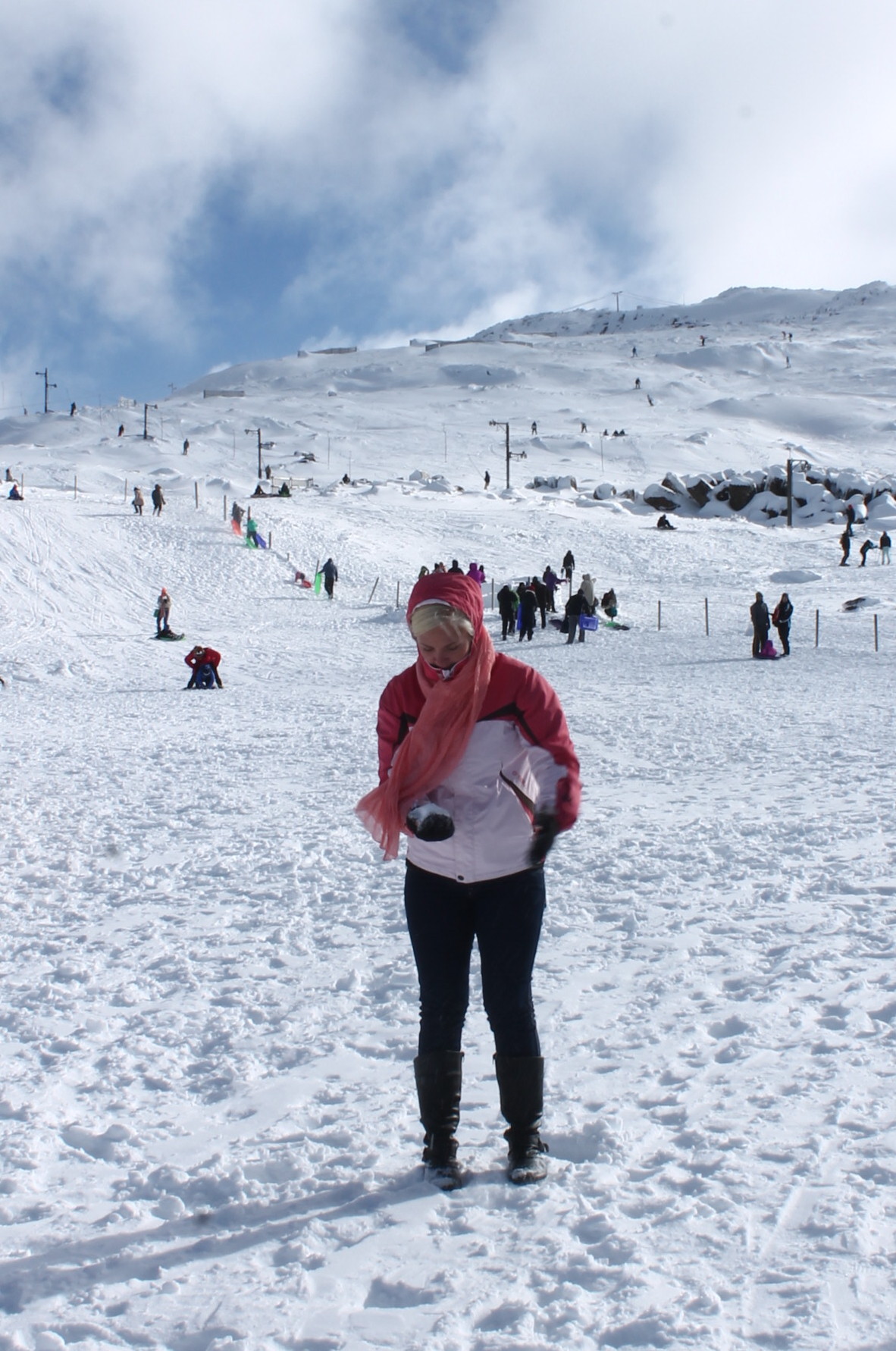 10 mintsa hiljem olimegi üleval ja ohhhh seda üllatust kui selgus, et tegemist ongi päris talve ja päris miinuskraadide ja päris lume ja veel rohke lumega! Ben Lomondi mäe näol on tegemist sellise suht väikese kuurortiga – Kuutsekast vist nõks suurem. Rahvast oli suht normaalselt, mitte liiga palju. Tsekkisime kõik laenutused ja pubid ja möllud üle ja vahtisime niisama inimesi. Naljakal kombel kohtasime seal Harleyt – Harley oli see tüüp kes meile viis ja pool aastat tagasi Bruny Islandil oma snorgelamisvarustust laenuks pakkus ja meid pärast hiljem veel koju ära viskas (No kõigepealt saare ühest otsast teise ja siis praami peale ja praami pealt koju, vot selline vend!). Nüüd astus lampi järsku juurde ja ütles “Elina and Maik!”. Uskumatu! Me muidugi seisime nagu kaks töllmokka seal ja ei saanud sõnagi suust. Samas nii imeline moment, et ei jõudnud pärast ära imestadagi.