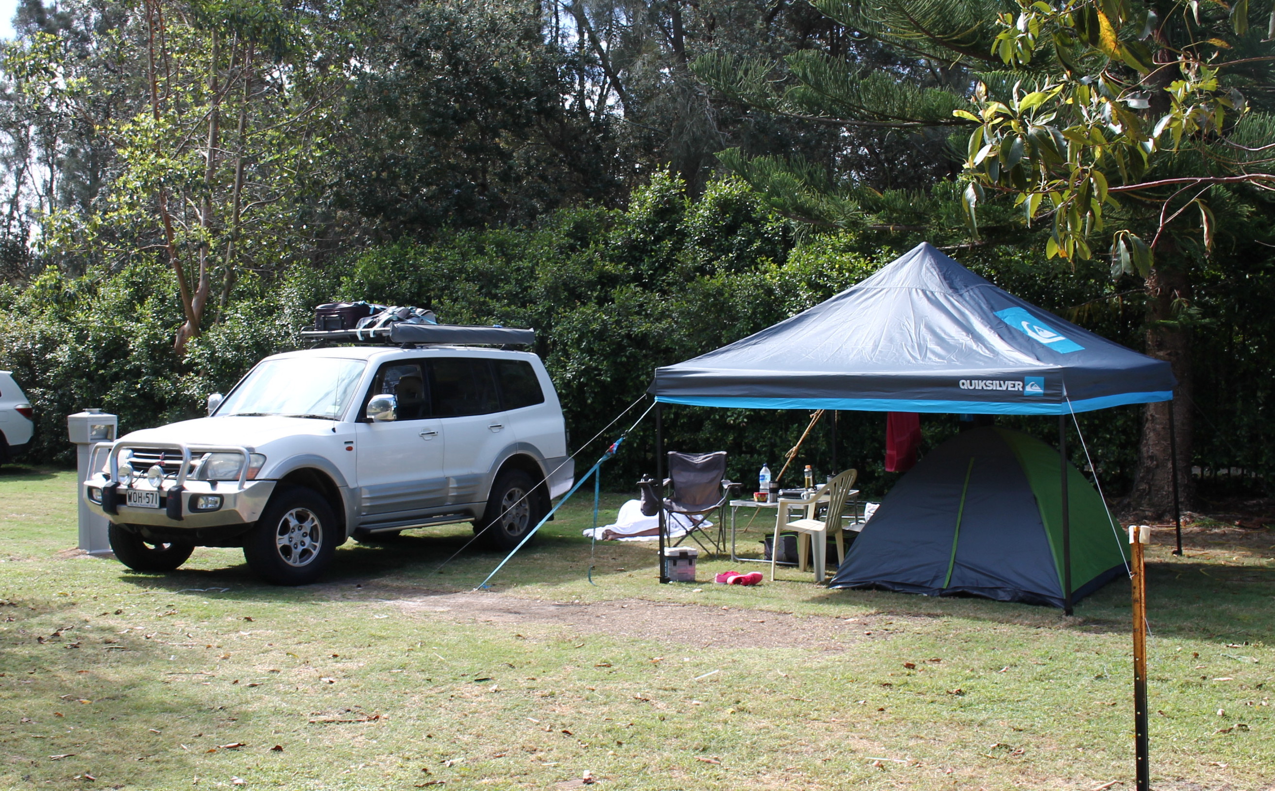 Port Stephensisse jõudsime oma Hunter Valley veinipäeva õhtuks. Port Stephensis olid meil igasugused põnevad suve nautlemise plaanid, aga kahjuks arvas ilmataat, et.. fuck it, hakkame parem sadama! Ja nii ta siis kallaski seal.. Laurale pidime telgi kohale lausa oma suure varjualuse püsti panema, et vihm ja tuul teda minema ei viiks/ära ei uputaks. Telgi kõrvale tekkis mingil hetkel reaalne oja :P Pildil võite kõik imetleda seda sensuaalset valget tooli mille me kuskilt prügikasti kõrvalt rottisime. Jõhkardid