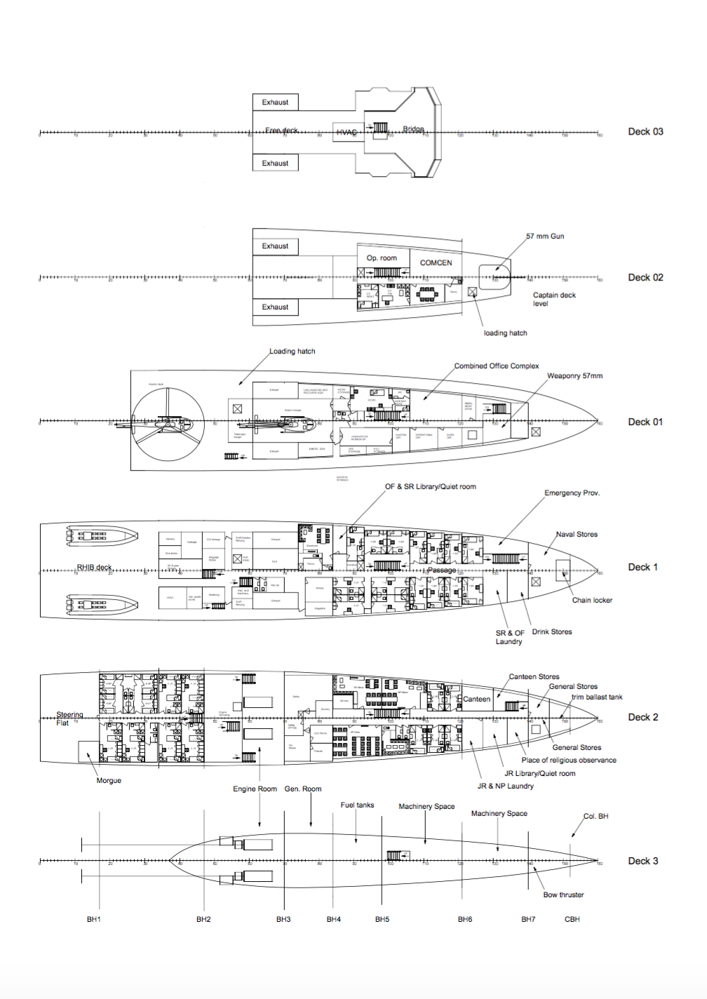 Allolev on Maiksu tehtud joonis kõigi kuue deki kohta. Hetkel on see tal alles pooleli, väidetavalt on sealt pooled asjad veel puudu :D Siin ka link suuremale failile – DSTO 1_350 GA (kliki lingil, mitte pildil), soovitan vaadata, see on päris põnev tegelikult. Ilusti on kõikide ruumide nimed ja otstarbed ka peal kirjas. Kes suurt faili ei viitsi avada, siis siin vähe kehvem pilt: