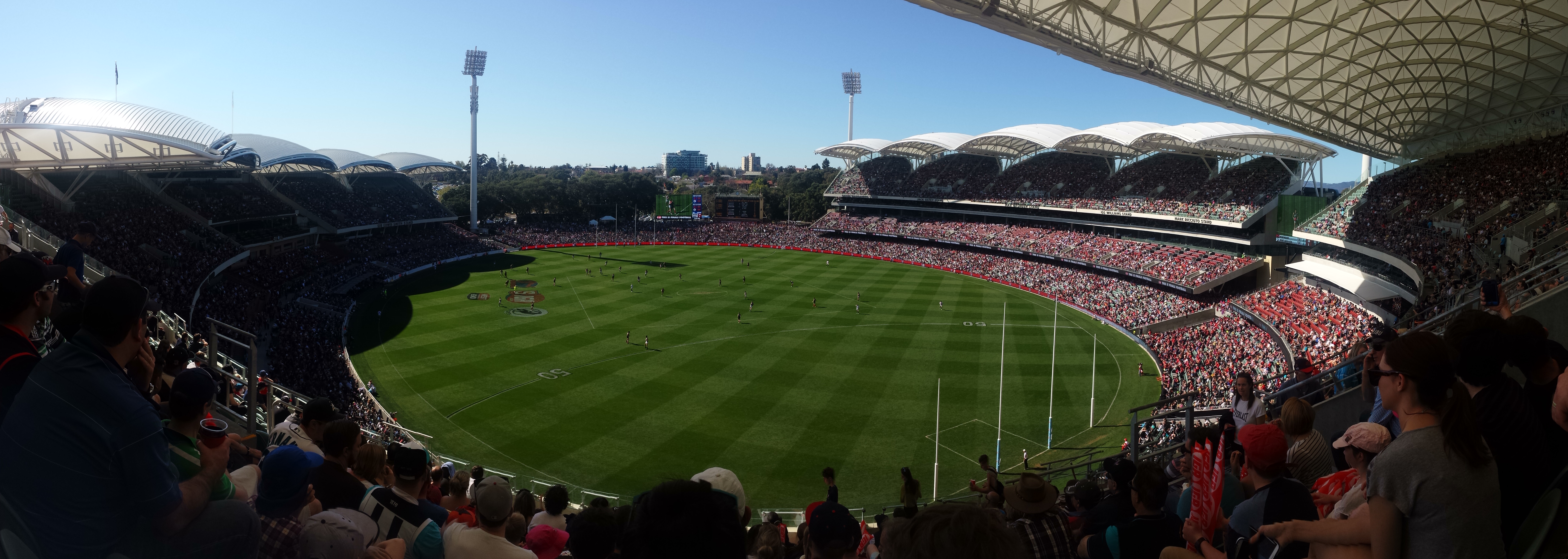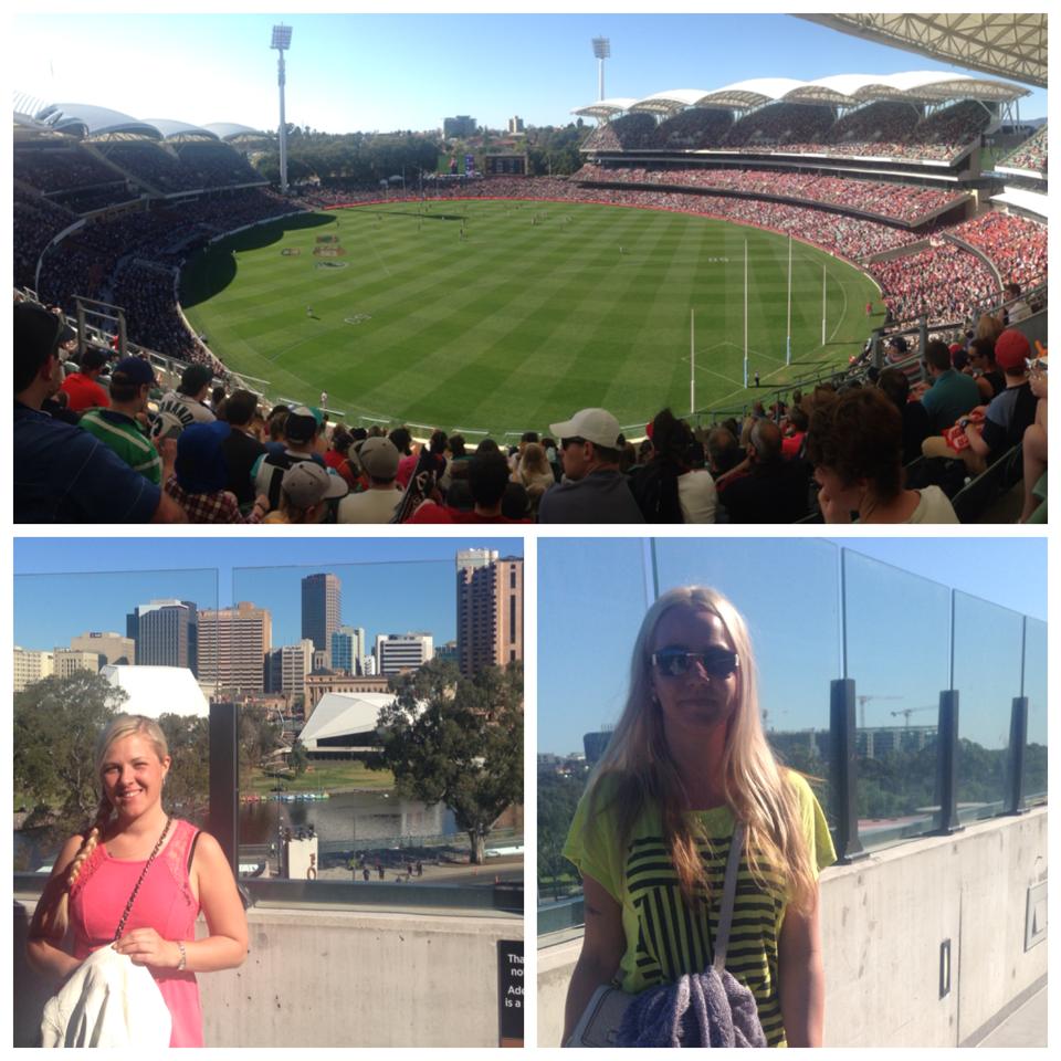 Mäng mida meie vaatamas käisime oli meie osariigi liiga finaalmäng, kus omavahel võtsid mõõtu Port Adelaide ja Norwood ning pealtvaatajaid oli ligikaudu 45 000. Täiesti omaette elamus on olla sellisel väljakul 45 000 hullumeelsega, kes teevad selliseid hääli, mida mina varem kuulnudki ei ole. Ovaal ise pidavat olema üks selle riigi parima “heliga” ovaale, mis on sihtotstarbeliselt nii ehitatud, et heli ülihästi leviks. Ja leviski, nii hästi lausa, et tegemist oli täiesti ebainimliku häälega! Istusime seal kahekesi särasilmil ja ei jõudnud seda lärmi ära imestada. Täiesti ainulaadne kogemus! Ja nii põnev oli vaadata, kuidas inimestele tõesti näis korda minevat, mis need 36 venda seal väljakul selle ühe laperguse palliga jändavad!
